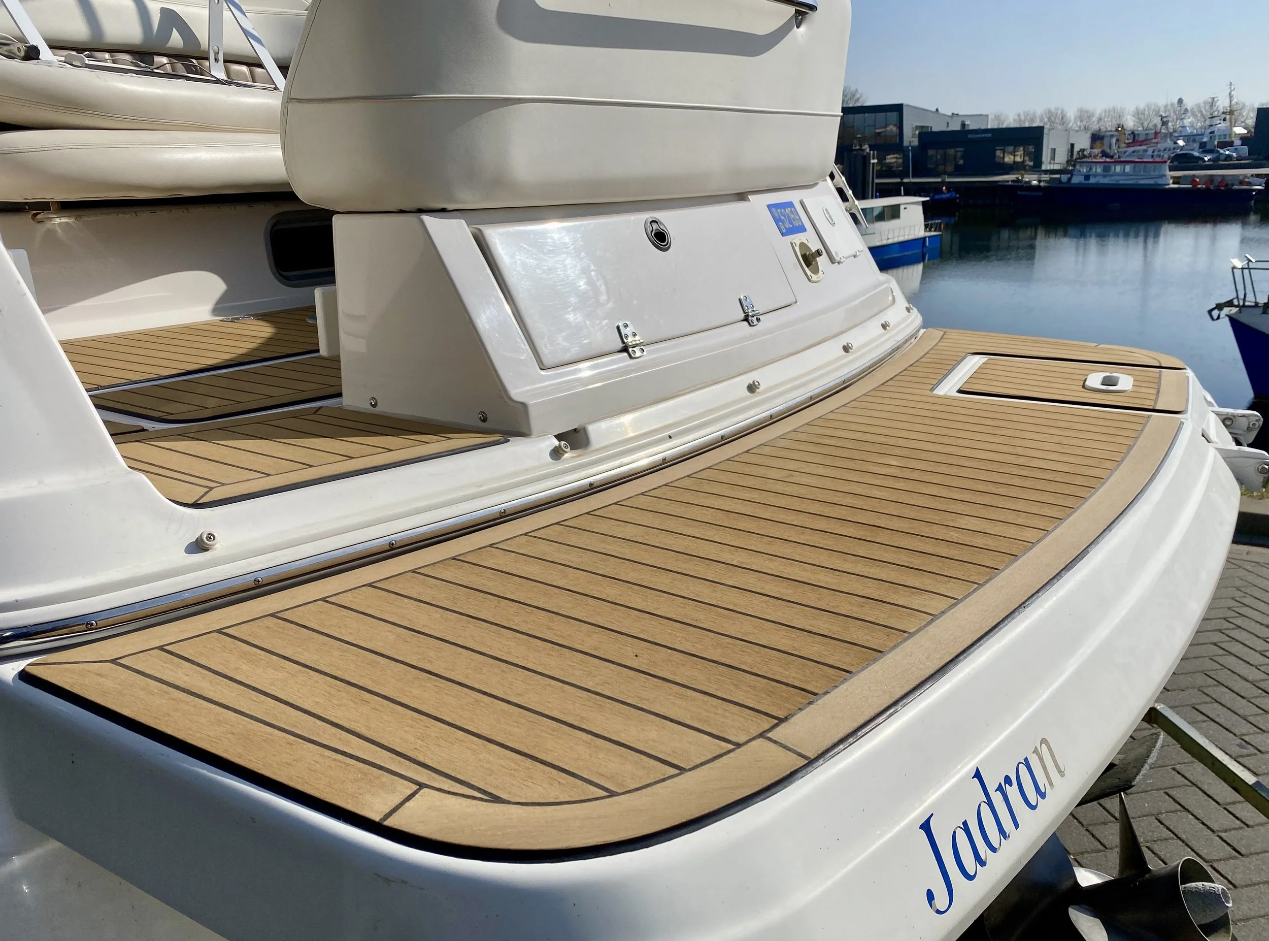 Onze kunststof teak vloeren zijn toepasbaar op uiteenlopende ondergronden. Of het nu gaat om staal, hout of polyester. Met gebruik van onze lijmen en kitten, zijn de vloeren goed te bevestigen op ieder oppervlak. Ook maakt dit materiaal het mogelijk om de vloeren toe te passen op traptreden, kuipen, kombuizen en andere binnenruimten. De flexibiliteit van het materiaal maakt het mogelijk om deze overal te verwerken en aan uw eigen wensen te laten voldoen. Het laten plaatsen van uitgesneden initialen of namen behoort bijvoorbeeld tot de mogelijkheden.