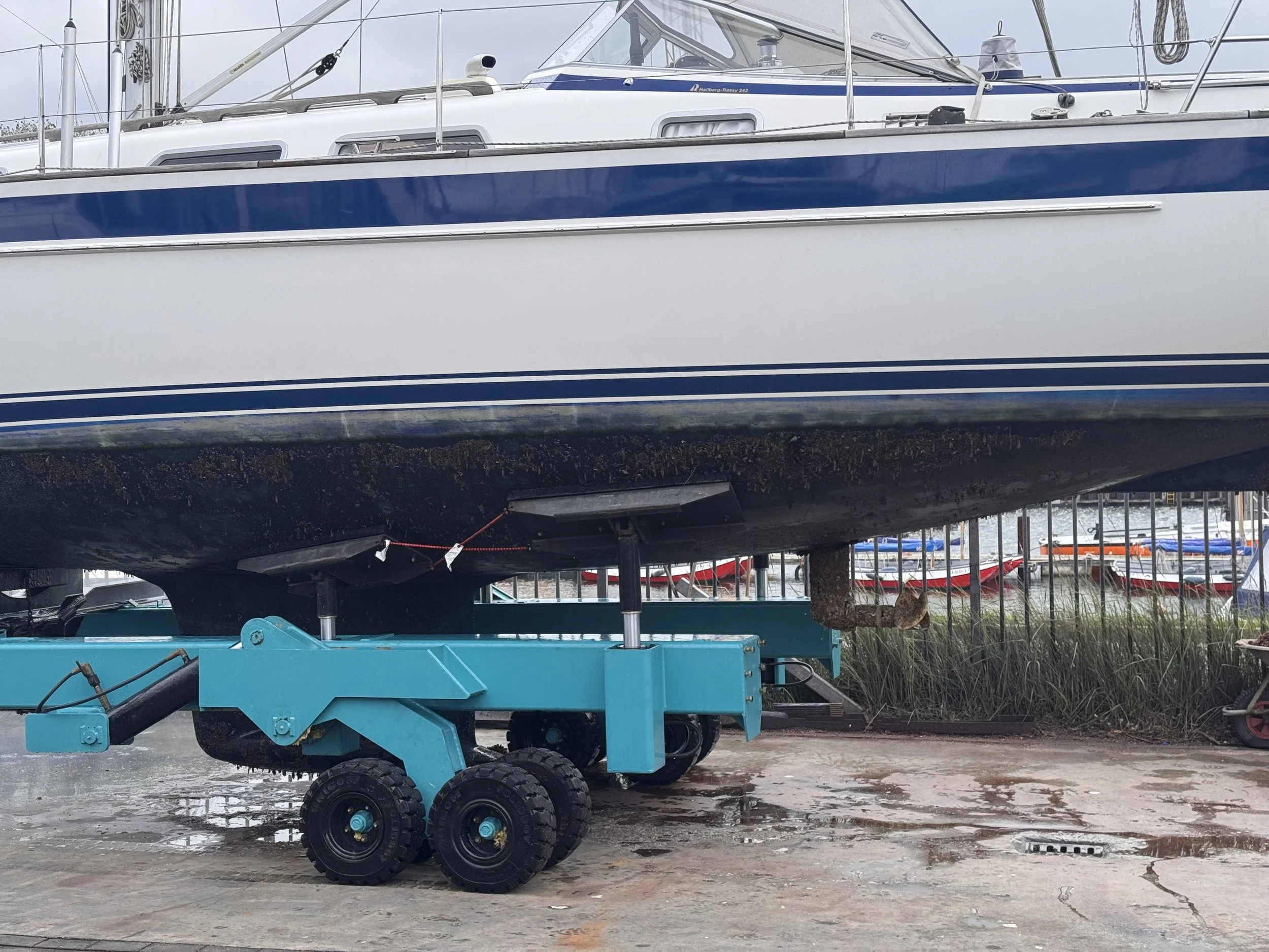Wij maken gebruik van een slipway trailer op onze eigen trailerhelling. Het schip wordt ondersteund door 5 pads die onafhankelijk bediend kunnen worden. De lift is op bijna alle verschillende vormen onderwaterschepen aan te passen inclusief multi-hull schepen.
